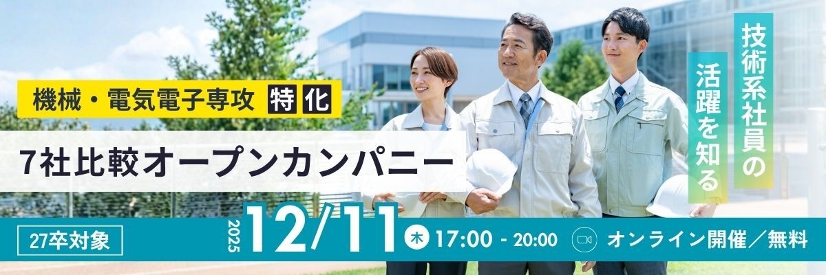 2027年卒業予定の機械系または電気電子系を選考している大学生 / 大学院生であれば誰でも参加可能です。■ 自分にマッチした職業を調べたい方