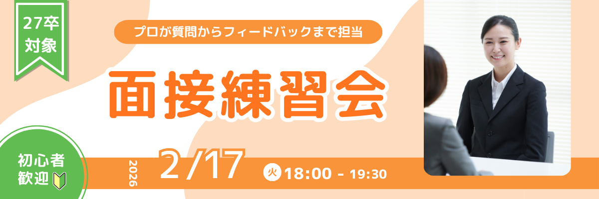 そんな悩みを持つ27卒のみなさん向けに、少人数の面接練習会を開催します。