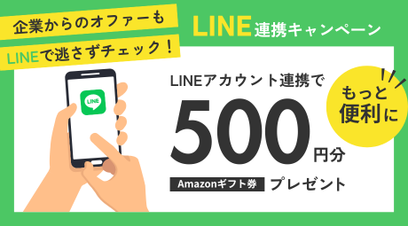 LINEアカウント連携をすることで、企業からのオファーやメッセージの通知をLINEで受け取れるようになります。すぐに反応しやすくなるため、企業からの印象もUPします。